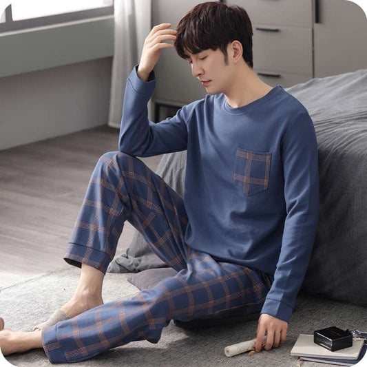 Soft Anti-Static Cotton Pajamas for Men – Long Sleeve Fit