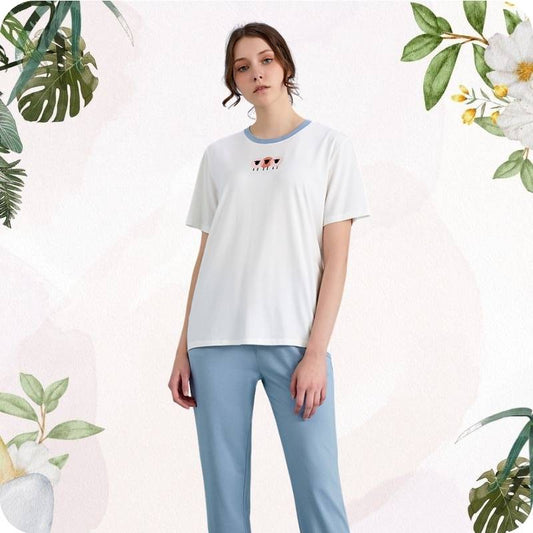 Bamboo Ladies Pullover Simple Casual Suit Fiber Pajamas
